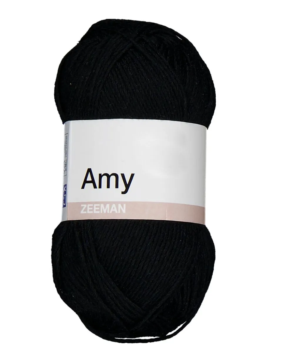 Fil à crocheter noir, composé à 100% de polyester. Une pelote pèse 50 grammes. Convient pour des crochets de taille 3-3,5 et des aiguilles à tricoter de taille 2,5-3,5. Un échantillon de 10 x 10 cm compte 16 mailles et 30 rangs. Ce fil est idéal pour des projets créatifs nécessitant un fil résistant.