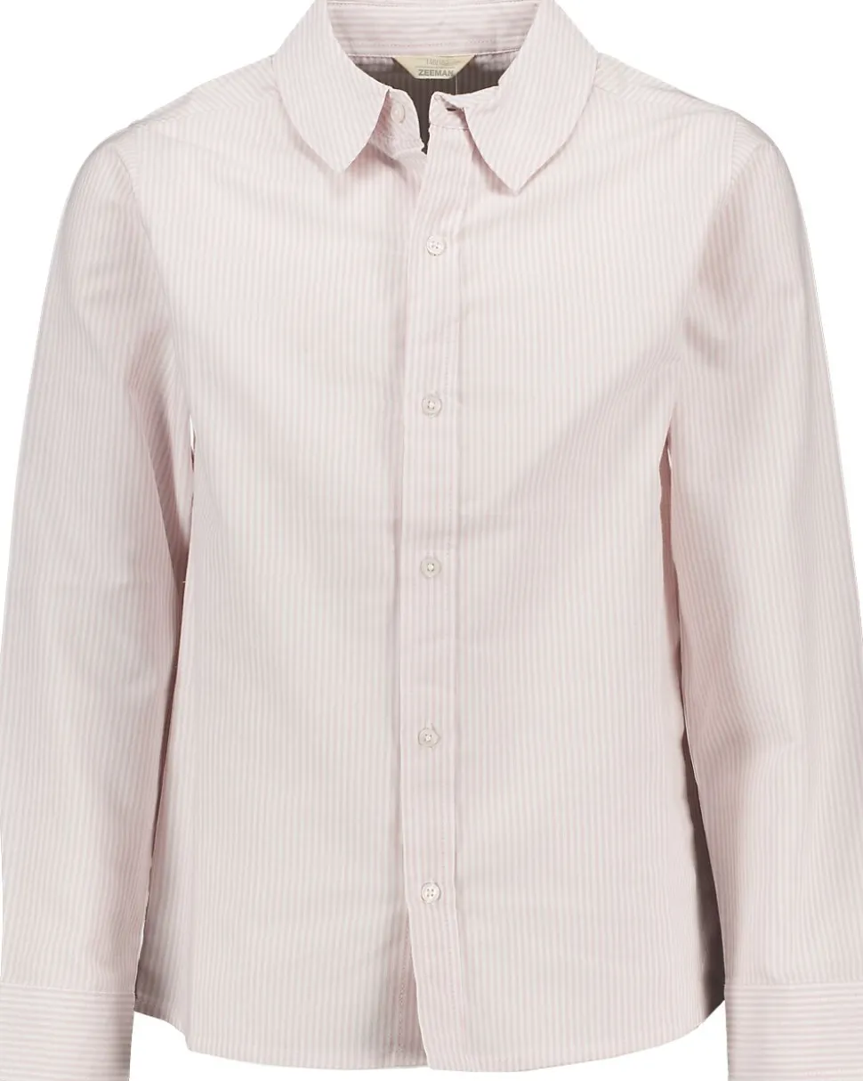 Cette chemise pour garçon a des manches longues et un col avec fermeture à boutons. Le tissu blanc est orné de fines rayures roses. Grâce à sa matière légère, la chemise est confortable à porter et convient à diverses occasions.