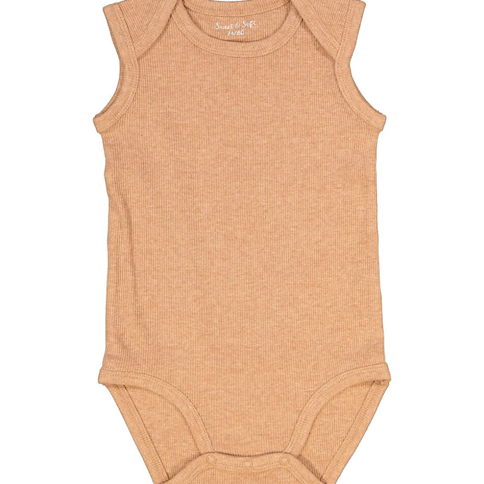 Ce body pour bébé en coloris brun rouille est composé d’une seule pièce, ce qui permet de bien garder les vêtements du dessous en place. Ainsi, le dos et le ventre restent couverts et la température de l’enfant reste plus stable. L’encolure américaine et les boutons-pression en bas permettent d’enfiler et d’enlever le body facilement, ce qui est pratique lors du changement de couche. Les bords sont solides et doux, ils ne frottent pas contre la peau et le body s’adapte bien au corps. Nous utilisons aussi le moins de coutures possible. Que demander de plus ?