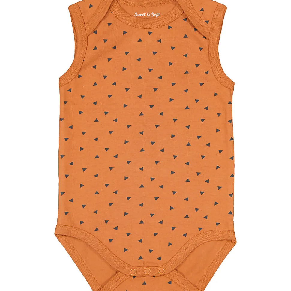 Les ourlets de ce body pour bébé en couleur terra sont solides et doux, afin qu’ils ne frottent pas la peau et qu’ils s’ajustent bien. Nous utilisons aussi le moins de coutures possible. Le body est constitué d’une seule pièce, ce qui le rend très pratique. Il maintient bien les sous‑vêtements comme la couche, garde le ventre et le dos couverts et s’enfile et se retire facilement. L’encolure américaine et les boutons‑pression en bas aident aussi pour cela, ce qui est pratique lors des changes rapides. Vous n’avez alors besoin de rien de plus.