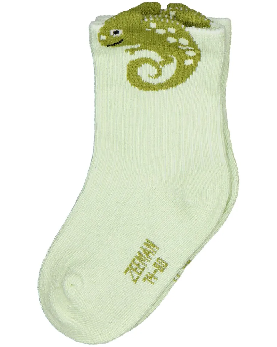 Ces chaussettes vertes pour bébé sont composées de 73 % de coton biologique, 25 % de polyamide et 2 % d’élasthanne. Elles sont douces et légèrement extensibles. Une joyeuse petite caméléon est ajoutée en détail. Le tissu est agréable au contact de la peau, ce qui permet à votre bébé de bouger confortablement. Grâce à l’élasticité, la chaussette reste bien en place sur le pied.