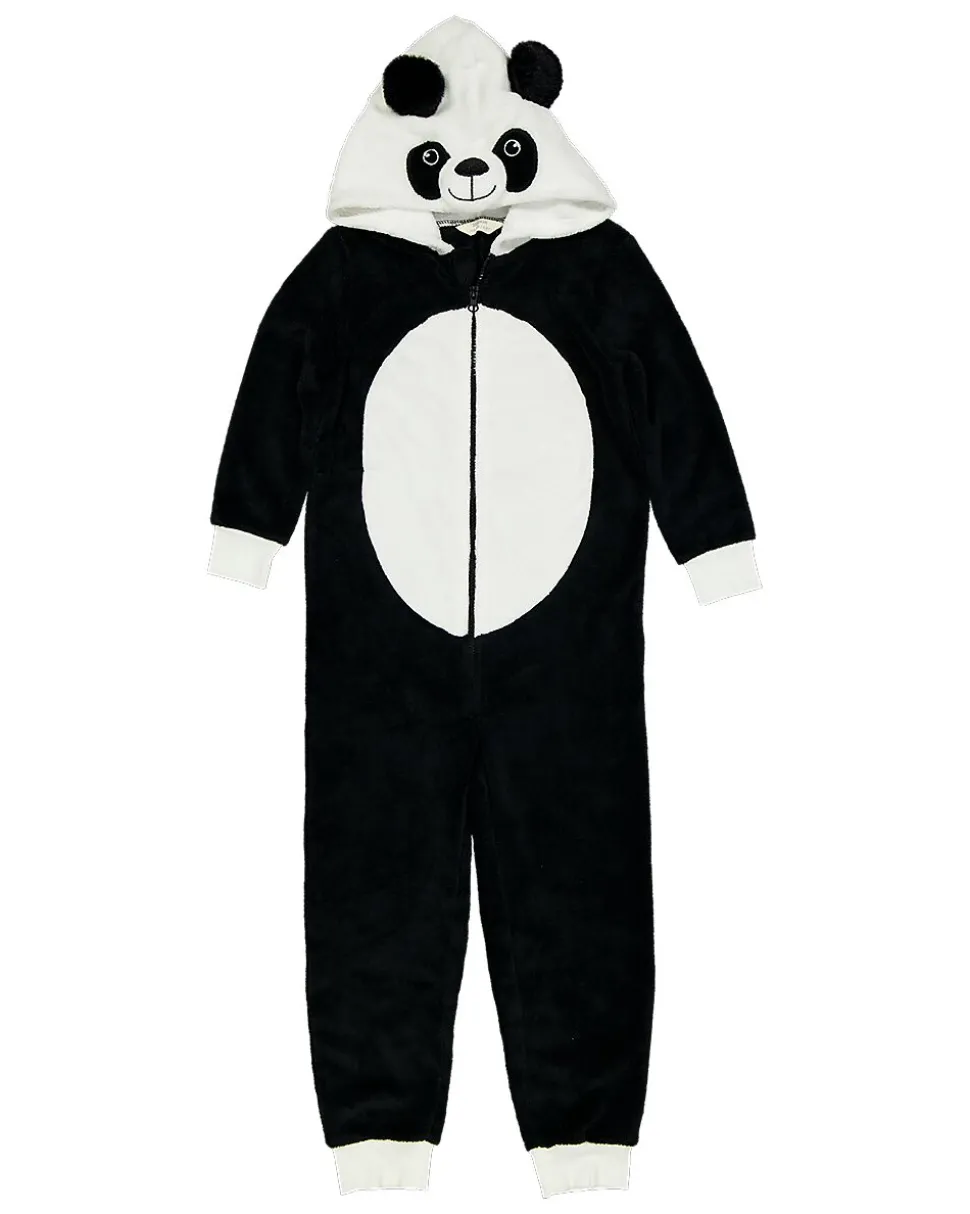 Cette combinaison noire est en polaire, composée d’un mélange de polyester recyclé et de polyester. Elle a une capuche avec un visage de panda et des petites oreilles, ce qui lui donne un côté ludique. Les détails blancs sur le ventre, les manches et les jambes ressortent bien. Le tissu doux garde votre enfant au chaud et à l’aise.