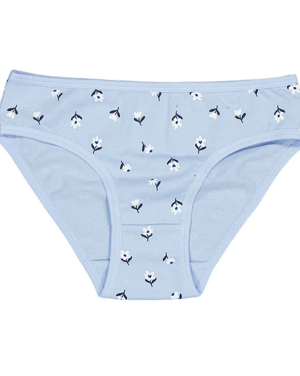 Cette culotte Dani pour fille est vendue par lot de 4, dans les coloris bleu clair et bleu foncé. Certaines culottes sont unies, d’autres ont de petits imprimés de fleurs. Le tissu est composé de coton, polyester et élasthanne, ce qui le rend doux et légèrement extensible. La taille élastiquée maintient la culotte bien en place, sans gêner les mouvements tout au long de la journée.