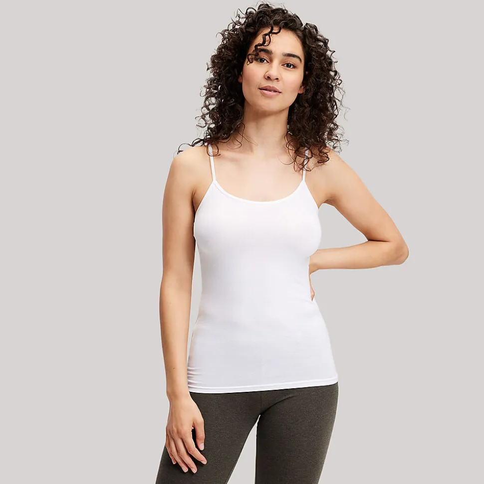 Ce débardeur blanc pour femme est fabriqué dans un coton doux avec un peu d’élasthanne. Le tissu est légèrement extensible et s’ajuste bien au corps. Les fines bretelles sont discrètes, ce qui permet de porter facilement le débardeur sous d’autres vêtements ou comme haut lors des journées plus chaudes. La coupe droite épouse le corps et le débardeur est un peu plus long pour rester bien en place. Les finitions sont réalisées avec des ourlets fins et doux, pour éviter les frottements sur la peau. Couleur unie, blanche.