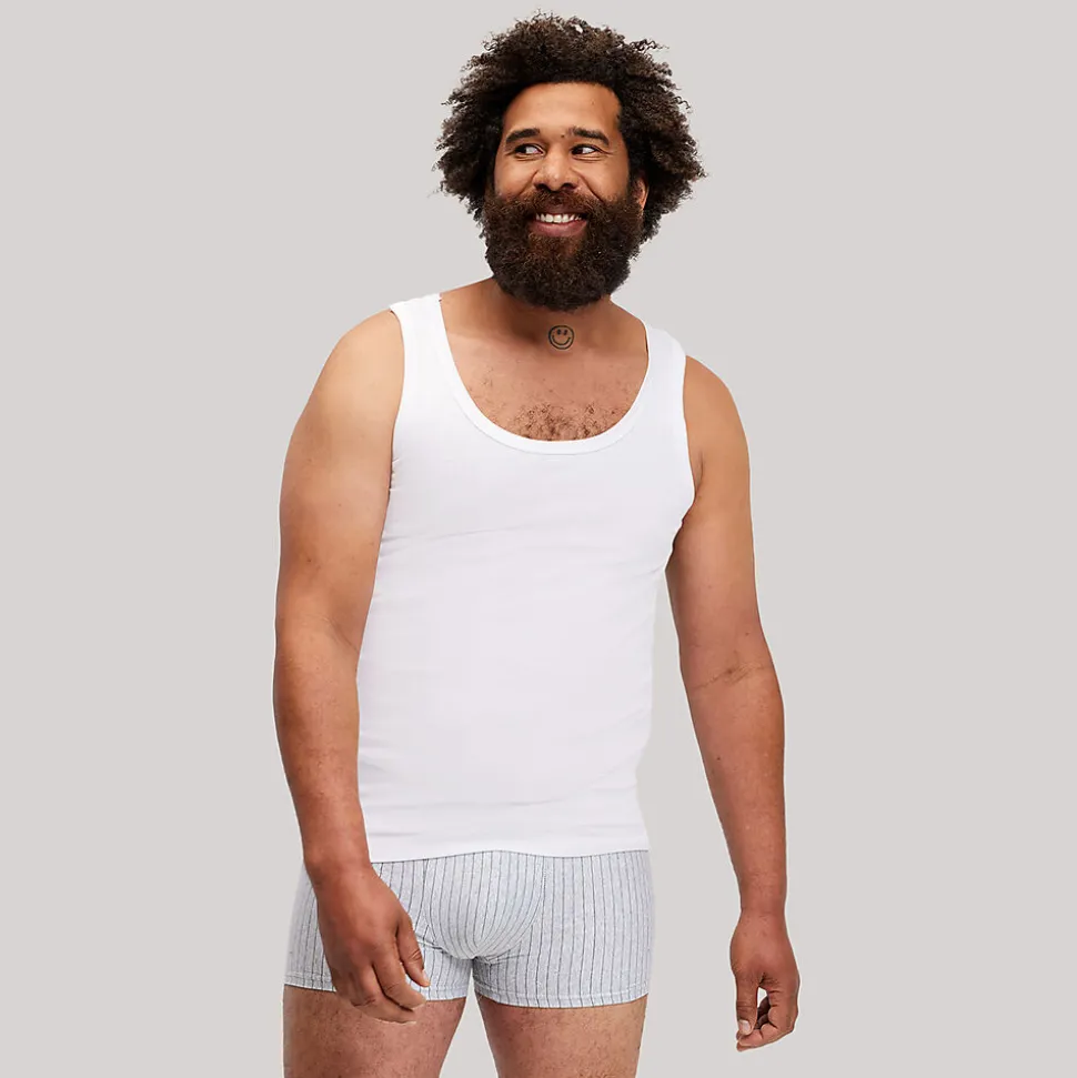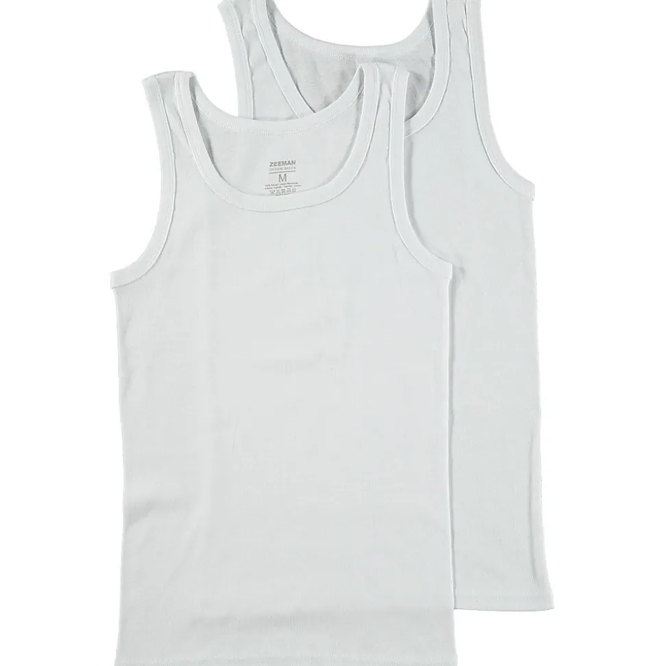Ces débardeurs blancs pour homme sont fabriqués dans un tissu doux et souple. Le modèle sans manches se porte parfaitement sous un pull comme couche de vêtement supplémentaire ou seul lors des journées plus chaudes. Les larges bretelles garantissent un confort optimal et évitent les frottements sous vos vêtements. Le col rond offre un effet bien ajusté et grâce aux ourlets fins et résistants, le débardeur ne se déforme pas, même après plusieurs lavages. Le lot contient deux pièces, pour que vous ayez toujours un débardeur propre sous la main.