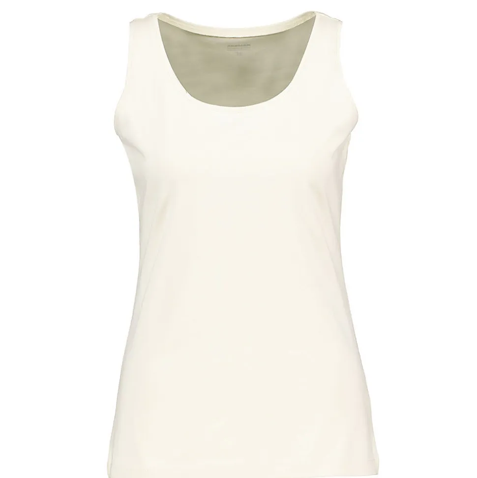 Ce débardeur blanc pour femme est sans manches et doté d’un col rond, ce qui permet de le porter facilement sous un pull ou un chemisier. Le tissu doux est composé de coton travaillé d’élasthanne, pour un haut agréable et légèrement extensible. Le débardeur épouse donc bien votre silhouette tout en restant confortable, même lorsqu’il fait chaud.