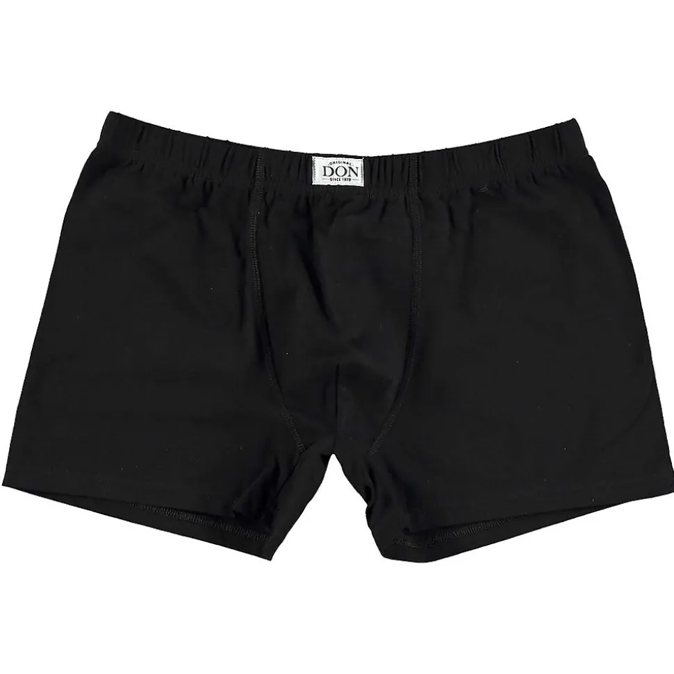 Ces boxers DON noirs pour homme sont fabriqués en coton légèrement travaillé d’élasthanne. Cela rend le tissu résistant et légèrement extensible, pour un ajustement parfait. Les boxers ont une coupe près du corps et présentent une finition douce et lisse au niveau des jambes et de la taille. La coupe courte garantit un modèle qui reste bien en place, sans remonter. Le lot contient deux boxers.