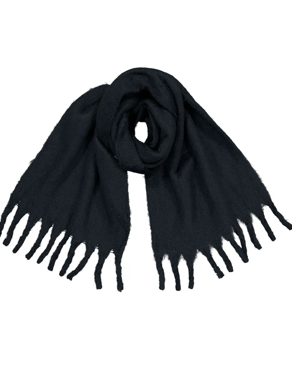 Cette écharpe noire a une forme simple et droite et est finie avec des franges visibles aux deux extrémités. L’écharpe mesure 146 centimètres de long et 32 centimètres de large. Son design est neutre, ce qui la rend facile à assortir avec différents manteaux et tenues. Grâce à son poids léger de 170 grammes, vous pouvez facilement emporter cette écharpe ou la ranger quand vous n’en avez pas besoin.