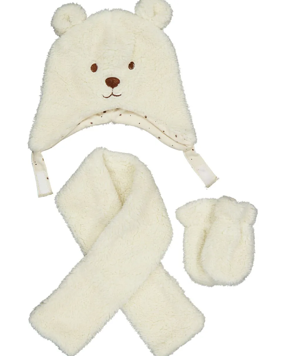 Cet ensemble de vêtements blanc se compose d’un bonnet avec des oreilles, d’une écharpe et de moufles. Le tissu doux vous garde bien au chaud par temps froid et la couleur neutre s’accorde avec tous les styles vestimentaires. Ainsi, vous pouvez protéger facilement et avec style vous-même ou votre enfant contre le froid.