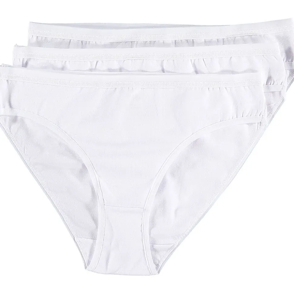 Cette culotte Kim pour femme est blanche et fabriquée dans un tissu doux en coton avec un peu d’élasthanne. Légèrement extensible, elle épouse bien le corps et est confortable à porter sous vos vêtements. Grâce à sa finition lisse, cette culotte reste très discrète. Vous recevrez un lot de trois culottes.
