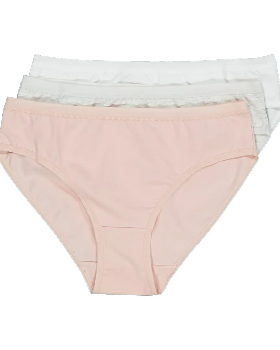 Cette culotte Kim pour femme est vendue par lot de trois, en rose et en blanc. Les culottes sont confectionnées dans un tissu doux composé à 95 % de coton, avec une touche d’élasthanne. Ainsi, elles sont agréables à porter et légèrement extensibles. Les couleurs unies leur confèrent un aspect sobre et épuré. Grâce à la ceinture élastique, la culotte reste bien en place, même lorsque vous bougez.