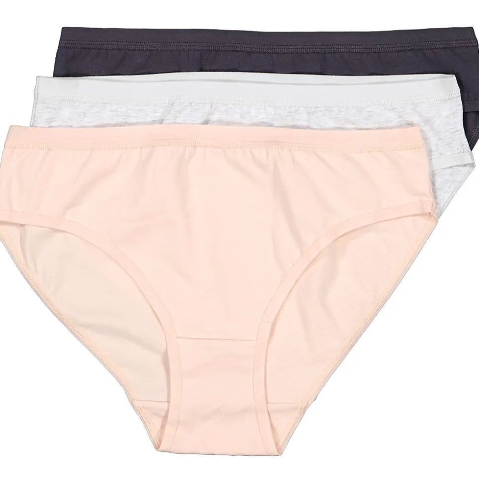 Cette culotte Kim pour femme est vendue par lot de trois, en rose, blanc et gris foncé. Le coton avec un peu d’élasthanne est doux et s’étire légèrement pour un ajustement confortable. La ceinture élastique aide la culotte à bien rester en place sous vos vêtements. Avec ses couleurs unies, elle ne se voit pas sous un pantalon ou une jupe.
