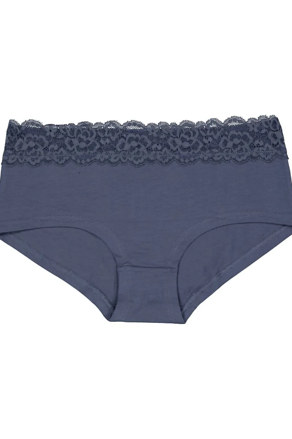 Ce lot de deux shortys Linda comprend un modèle couleur lavande à pois et un bleu foncé uni. Les deux shortys possèdent une large taille en dentelle douce, qui épouse agréablement votre corps. Grâce à leur composition en coton et élasthanne, ils sont souples et extensibles, vous permettant de bouger confortablement toute la journée.