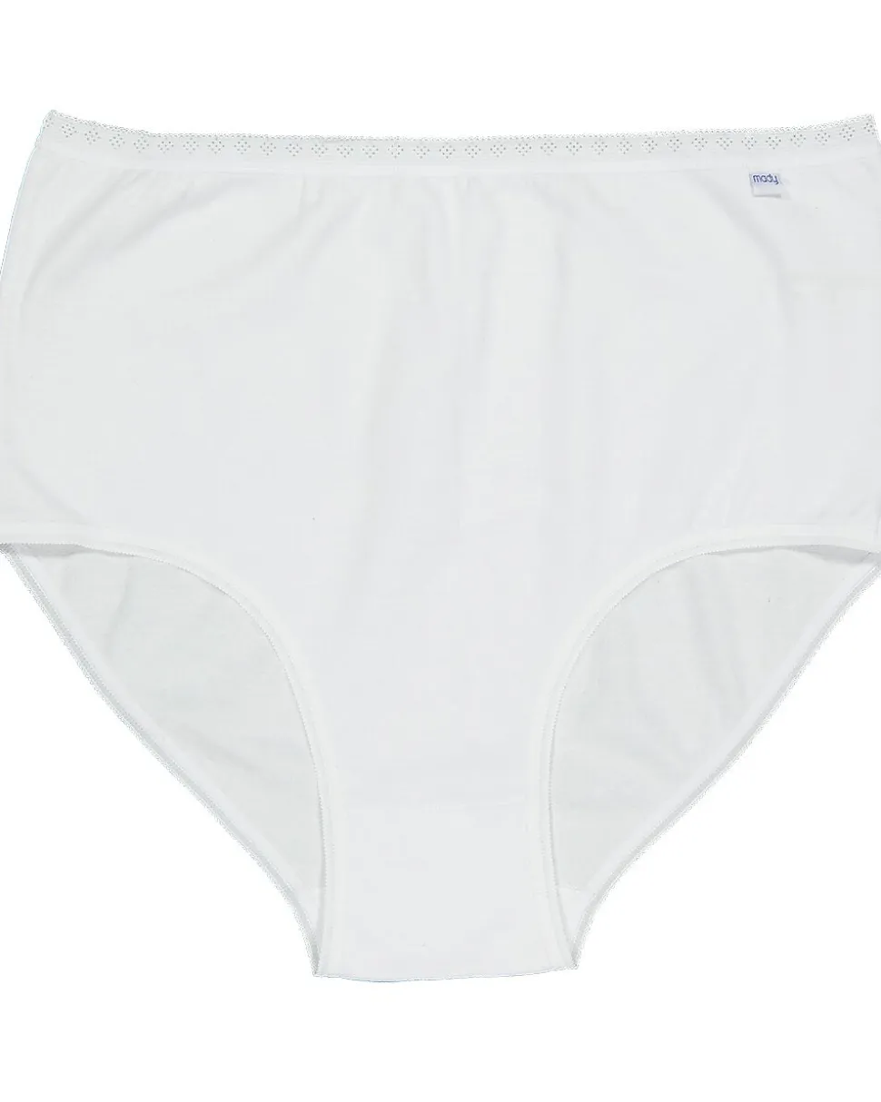 Nos slips Mady sont populaires depuis des années grâce à leur coupe haute et confortable et à leur tissu extensible. C’est un bon choix si vous cherchez un slip taille haute. Comme ce slip arrive à la taille, il couvre le ventre. Cela permet de le porter facilement sous un pantalon ou une jupe taille haute. La ceinture de ce slip taille haute Mady pour femme en XXL est élastique. Il s’adapte bien au corps et reste agréable toute la journée. Il est entièrement couvrant à l’avant comme à l’arrière, ce qui le rend généralement invisible sous les vêtements.