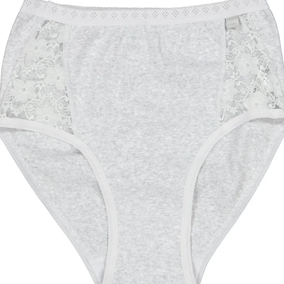Ce lot comprend deux culottes taille haute grises pour femme. Les culottes sont composées à 95 % de coton et 5 % d’élasthanne, ce qui les rend douces et légèrement extensibles. La taille élastiquée assure un ajustement confortable et maintient la culotte bien en place. Le devant est agrémenté de détails en dentelle qui apportent une touche de douceur.