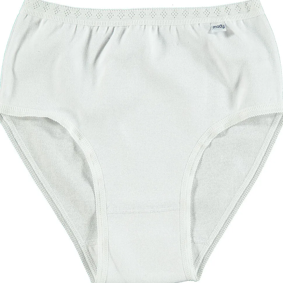 Nos culottes Mady sont populaires depuis de nombreuses années grâce à leur design confortable à taille haute et à leur matière extensible. La culotte remonte bien au niveau de la taille pour un meilleur maintien. La taille élastiquée est large et douce, elle ne serre donc pas la peau et maintient la culotte blanche bien en place. Les coutures ont une finition lisse et ne frottent pas désagréablement contre la peau. Beaucoup de nos clientes portent également cette culotte comme sous-vêtement de grossesse ou post-accouchement. Le lot contient deux culottes.