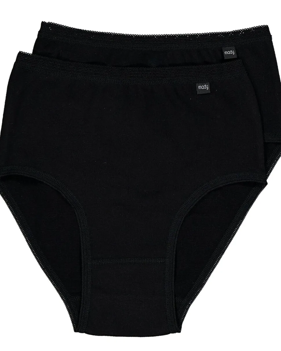 Ces culottes noires Mady pour femme sont composées à 95 % de coton et 5 % d’élasthanne, offrant un tissu doux et légèrement extensible. La coupe confortable garantit une culotte qui reste confortablement ajustée tout au long de la journée.