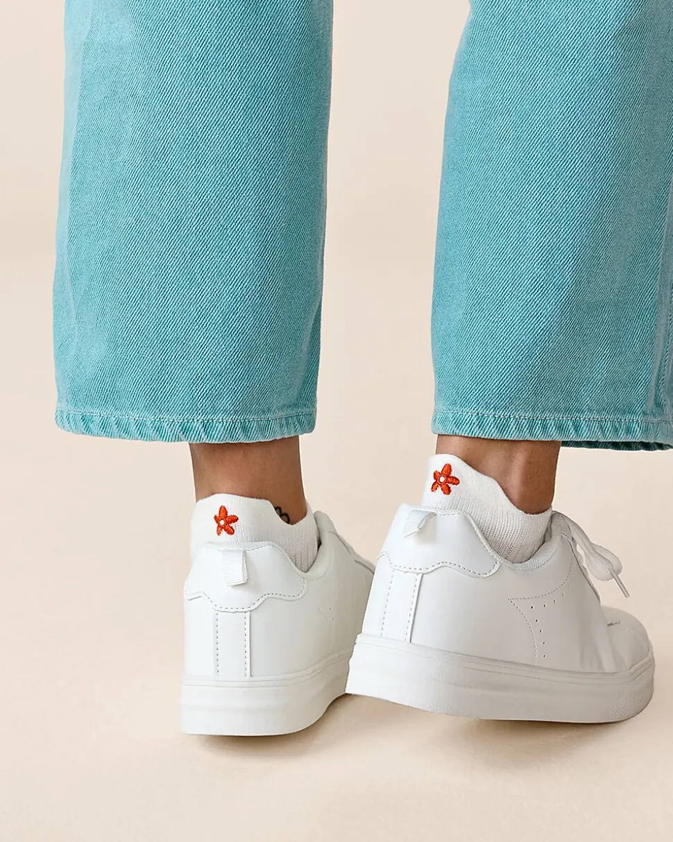 Ces chaussettes de sneakers blanches sont vendues par lot de cinq. Le petit motif coloré sur le dessus permet de les distinguer facilement. Leur coupe basse reste discrète sous beaucoup de chaussures, pour un look simple. Le tissu doux s’adapte bien au pied, ce qui les rend agréables et confortables à porter au quotidien.