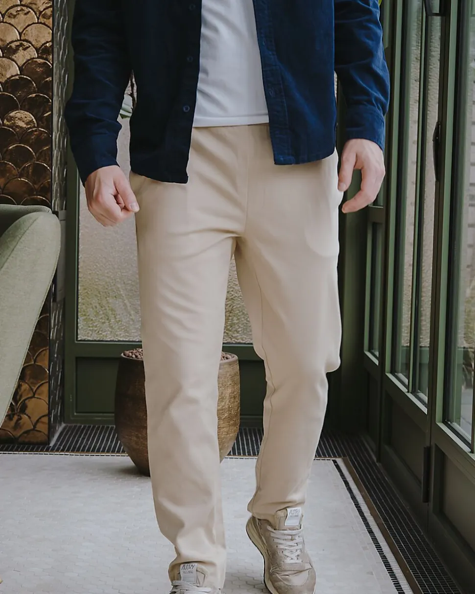 Ce pantalon beige pour homme a une taille élastiquée qui s’adapte bien, ce qui le rend facile à enfiler et agréable à porter. Les jambes tombent droit. Grâce au mélange de coton, de polyester et d’élasthanne, le tissu est souple et accompagne bien vos mouvements, pour rester confortable dans les activités quotidiennes. Vous pouvez porter ce pantalon aussi bien de façon décontractée que plus habillée.