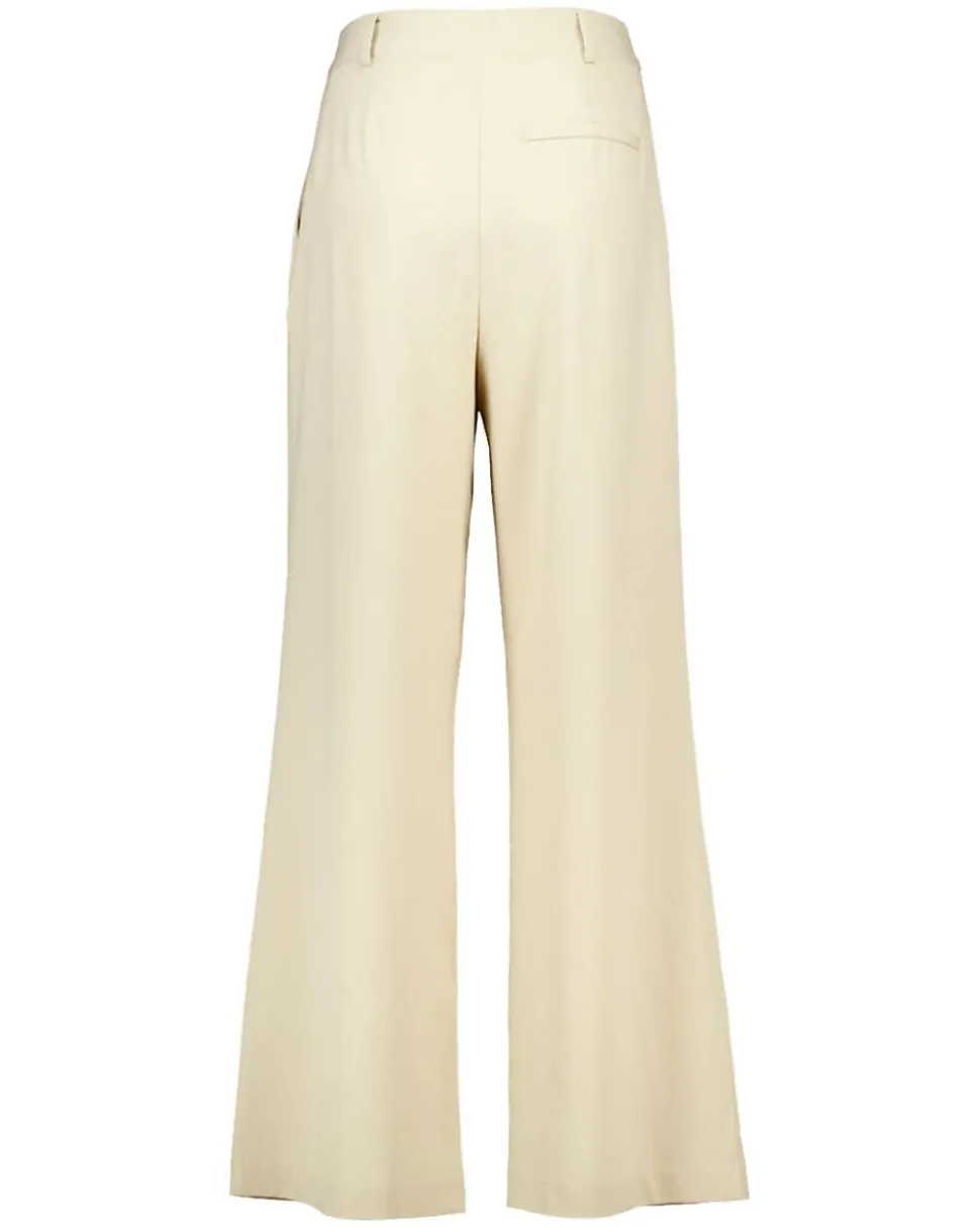 Confectionné dans un tissu souple composé de polyester, de viscose et d’élasthanne, ce pantalon beige pour femme est à la fois doux et agréable à porter. Sa taille haute et ses jambes droites et larges vous offrent une grande liberté de mouvement, pour un confort optimal tout au long de la journée. Grâce à sa couleur neutre, il s’associe facilement avec d’autres vêtements. Le pantalon est doté d’une fermeture sur le devant et de poches latérales pratiques.