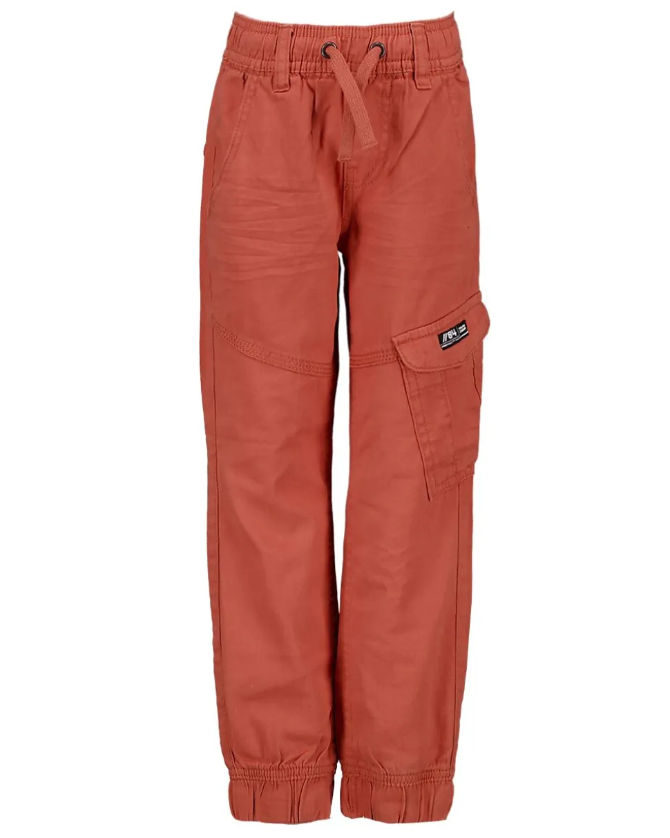 Ce pantalon cargo long pour garçons est fabriqué en toile solide. Le pantalon a un élastique en bas des jambes et un cordon à la taille pour un bon ajustement. Sur la jambe se trouve une poche pratique avec rabat qui se ferme avec du velcro. La couleur et le tissu rendent ce pantalon adapté à un usage quotidien et pour jouer.