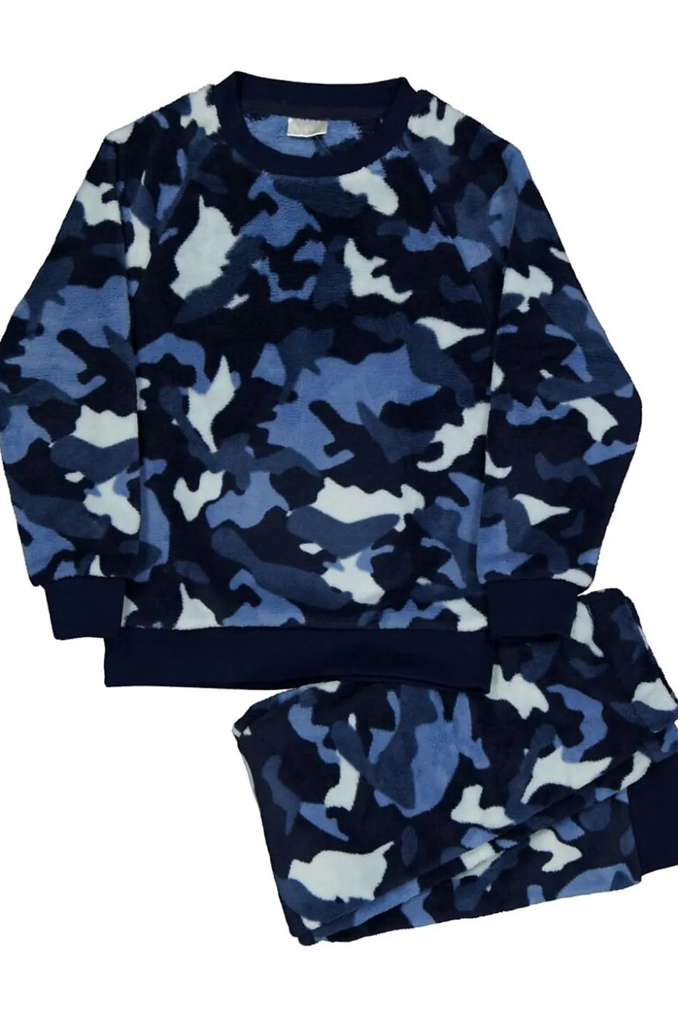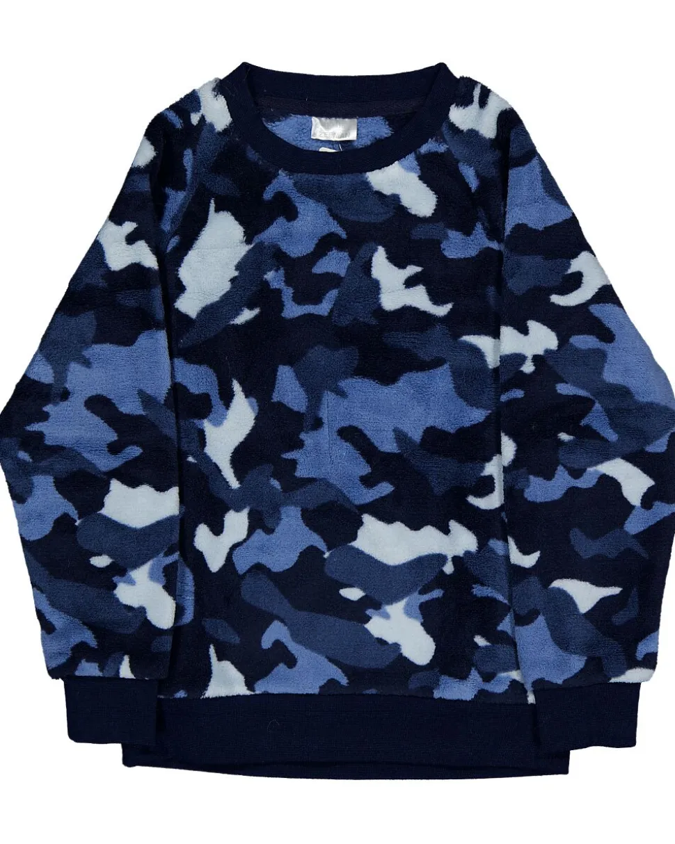 Ce twosie pour garçon est fabriqué en polaire coral douce, 100 % polyester. L’ensemble se compose d’un haut à manches longues et d’un pantalon assorti. L’imprimé camouflage bleu donne un look décontracté. Grâce aux bords au col, aux manches et aux jambes, le vêtement reste bien en place. Idéal pour être à l’aise à la maison.