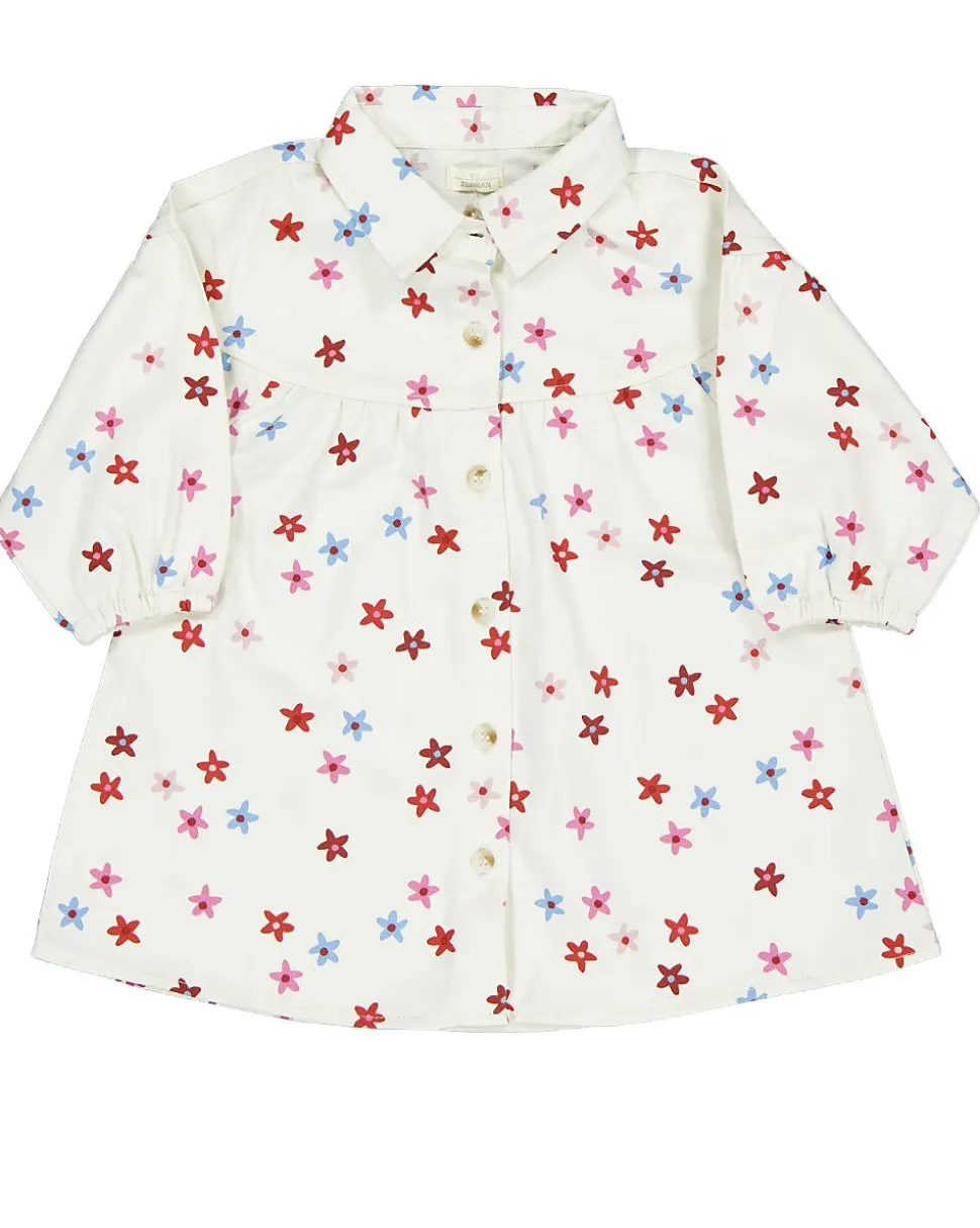 Cette robe pour bébé est de couleur beige et fabriquée en 100 % coton. Le tissu est souple au toucher et convient au contact avec une peau délicate. La robe présente un style simple et offre un confort grâce à la matière naturelle.