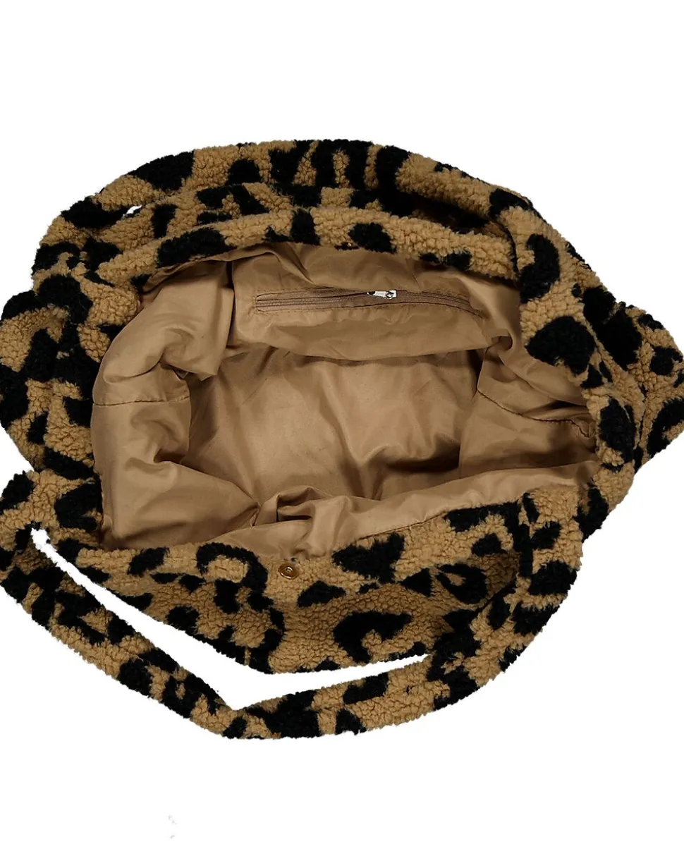 Ce sac pour femme a un motif léopard dans les couleurs marron et noir. La poignée courte permet de porter le sac facilement à la main ou sur l’épaule. Pratique pour emporter vos affaires de tous les jours.