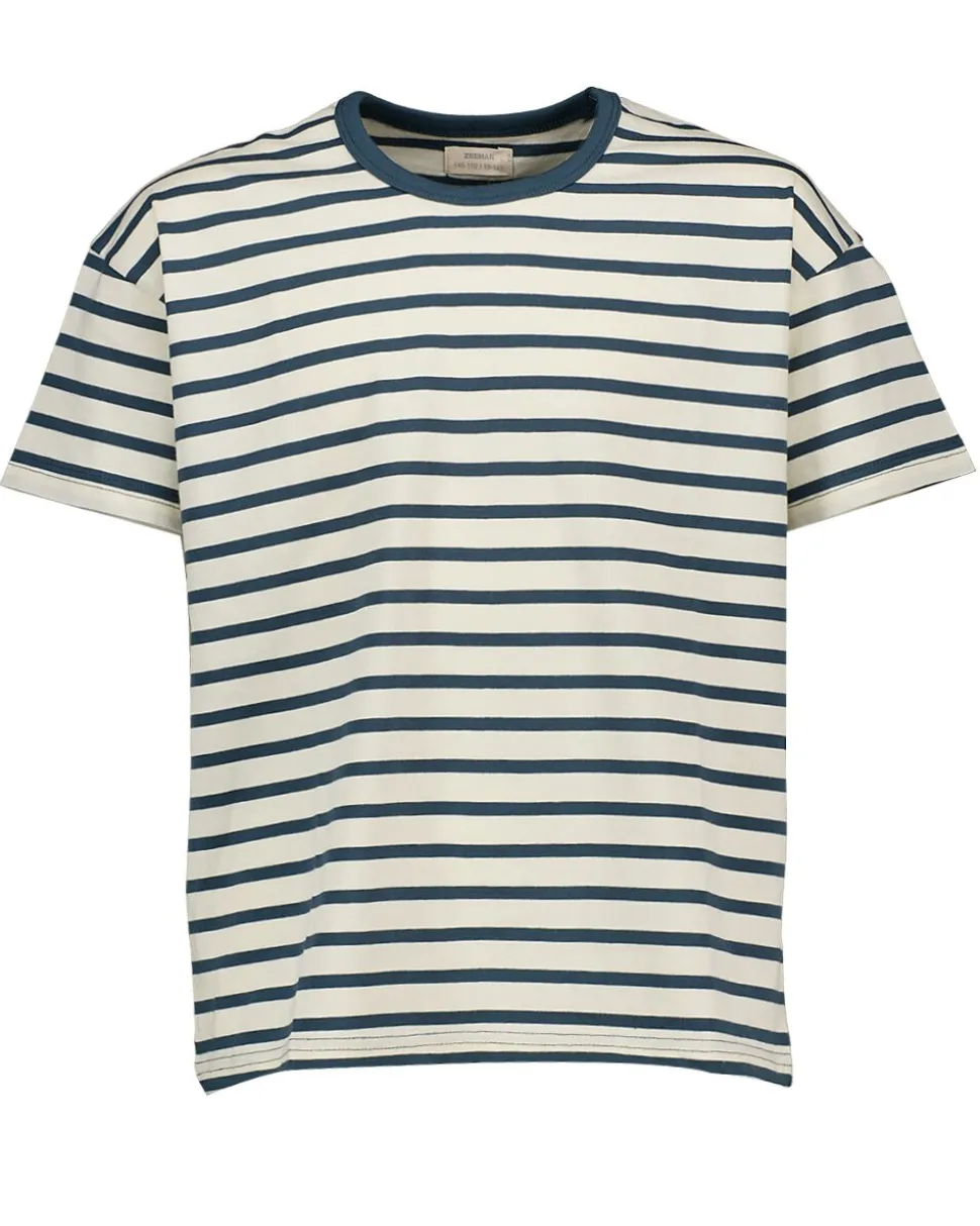 Ce T-shirt beige pour garçon a des rayures bleu foncé et un col rond. Les manches courtes permettent à votre enfant de bouger facilement, il peut donc jouer sans problème. Le tissu jersey simple est souple et agréable à porter. Grâce à son design simple, ce T-shirt se combine bien avec différents pantalons ou shorts.