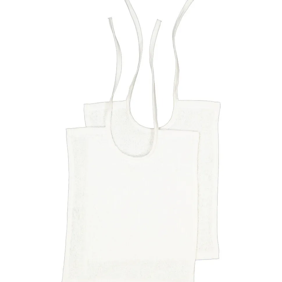 Gardez les vêtements de votre bébé aussi propres que possible avec ces bavoirs en tissu blanc pour bébé. Fabriqués en coton, ils sont bien absorbants, sèchent rapidement et se nettoient facilement. Le bavoir s’attache facilement grâce aux liens à nouer au cou. Il est joliment travaillé d’un bord fin tout autour qui n’irrite pas la peau. La couleur unie s’accorde avec tout. Ce lot contient deux bavoirs.