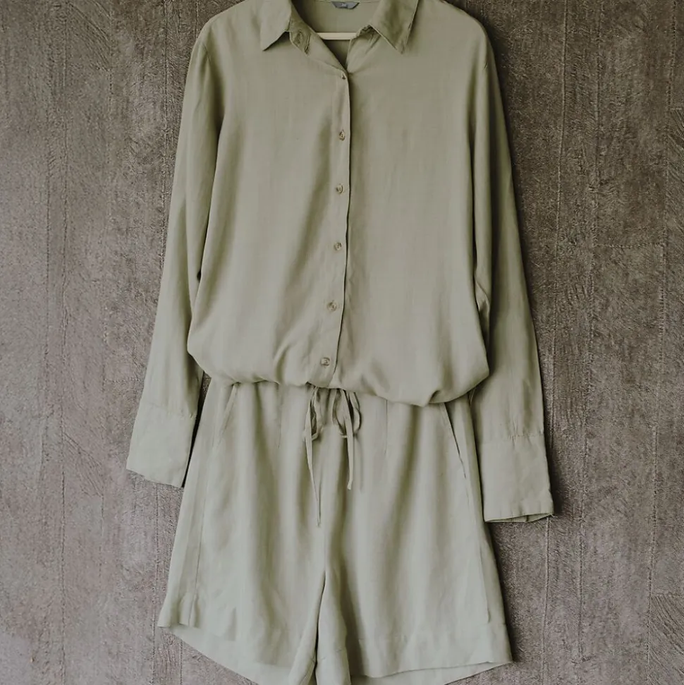 Cette blouse verte pour femme a des manches longues et se ferme avec des boutons sur le devant. Le col donne une apparence soignée, ce qui permet de porter cette blouse pour différentes occasions. Grâce au mélange de viscose et de lin, le tissu est souple et léger, ce qui la rend agréable à porter toute la journée.