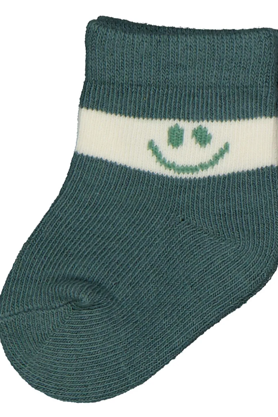 Cet ensemble de cinq paires de chaussettes pour bébé est composé des couleurs beige, jaune, vert foncé et blanc, avec des rayures gaies et un petit visage souriant sur le côté. Le mélange de coton, de polyester et d’un peu d’élasthanne rend les chaussettes douces et légèrement extensibles, pour qu’elles restent bien en place. Elles sont faciles à enfiler et la matière est agréable sur la peau.