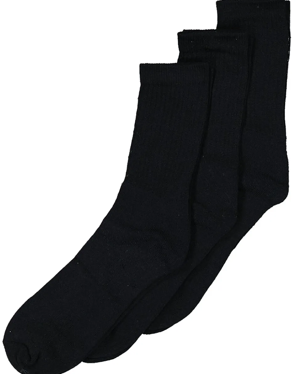 Ces chaussettes de sport noires pour homme sont fabriquées en coton et polyester, ce qui les rend douces au toucher et résistantes à l’usage. La matière permet également de garder vos pieds secs, pour éviter ampoules et irritations. Les chaussettes ont un bord élastiqué qui les maintient bien en place dans vos chaussures. Grâce à leur coloris noir uni, vous pouvez facilement les associer à toutes vos tenues de sport. Le lot contient trois paires.