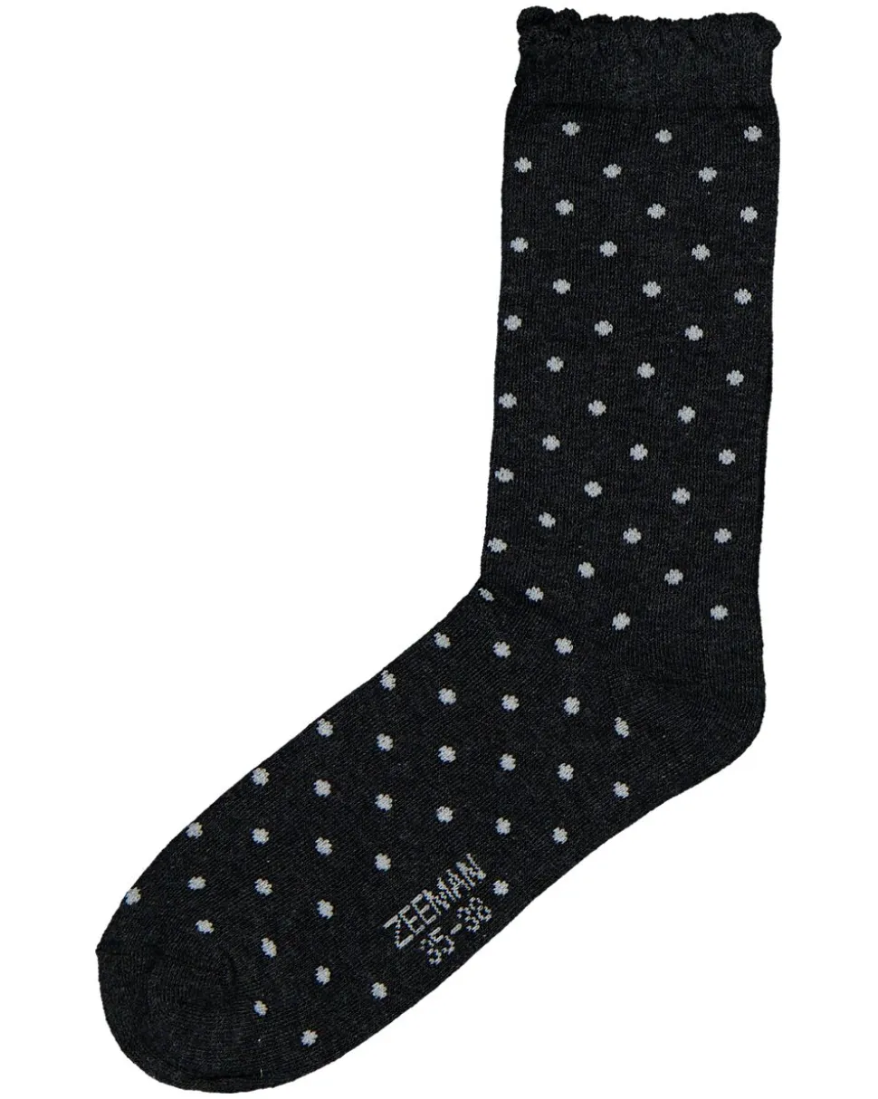 Ce lot de 5 chaussettes pour femme présente différents motifs en gris et noir, comme des pois et des rayures. Elles sont fabriquées en coton, polyester et élasthanne, ce qui les rend douces et légèrement extensibles. Les bords élastiques tiennent bien autour de la cheville, pour que les chaussettes restent en place dans vos chaussures pendant la journée.