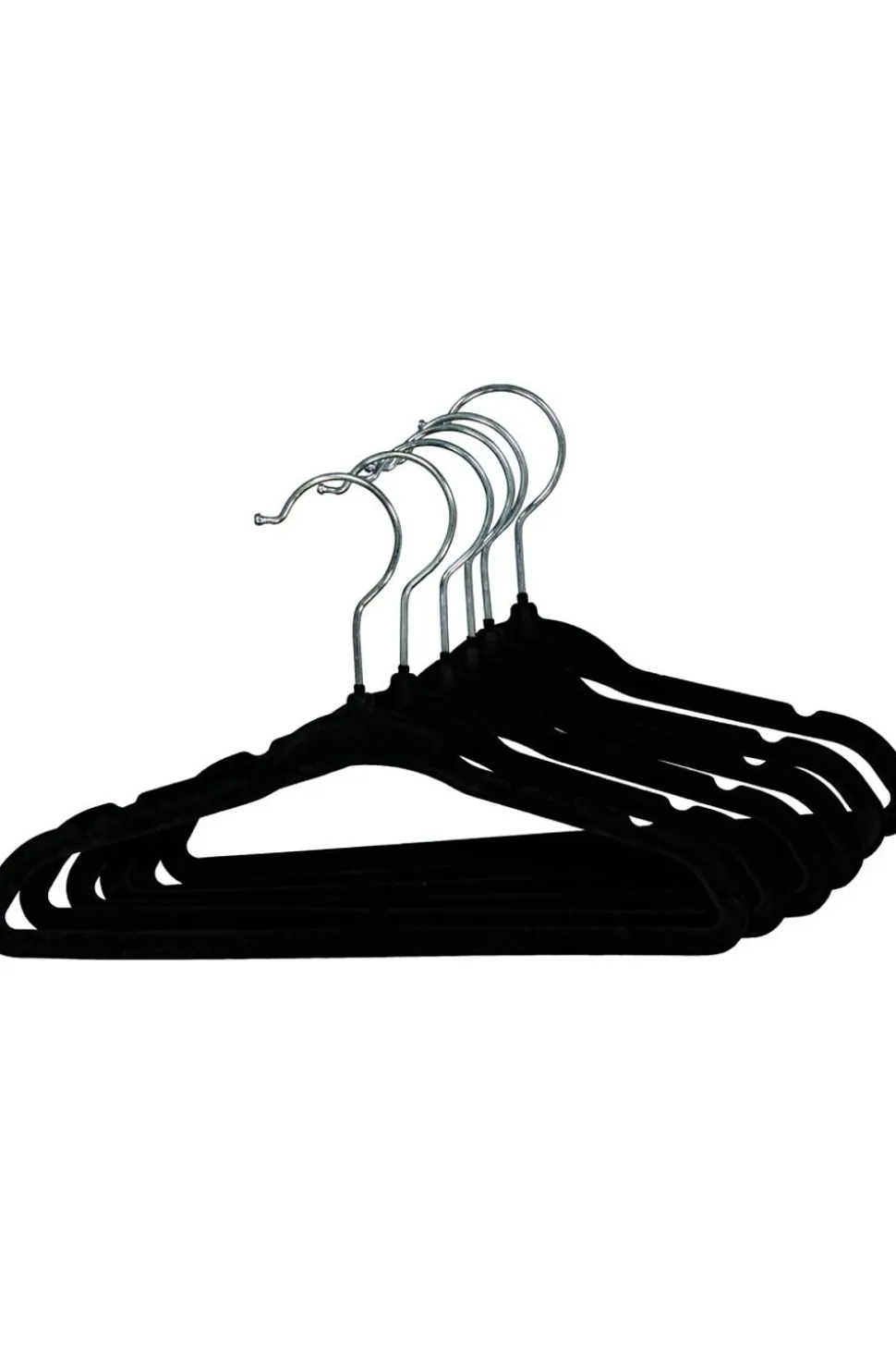 Cet ensemble de 6 cintres noirs a un design fin et léger. L’association de polyéthylène téréphtalate, de fer et de polyamide rend les cintres solides et durables. Grâce à leur profil étroit, vous pouvez en accrocher plusieurs côte à côte sur votre tringle, pour suspendre vos vêtements de manière ordonnée et claire.