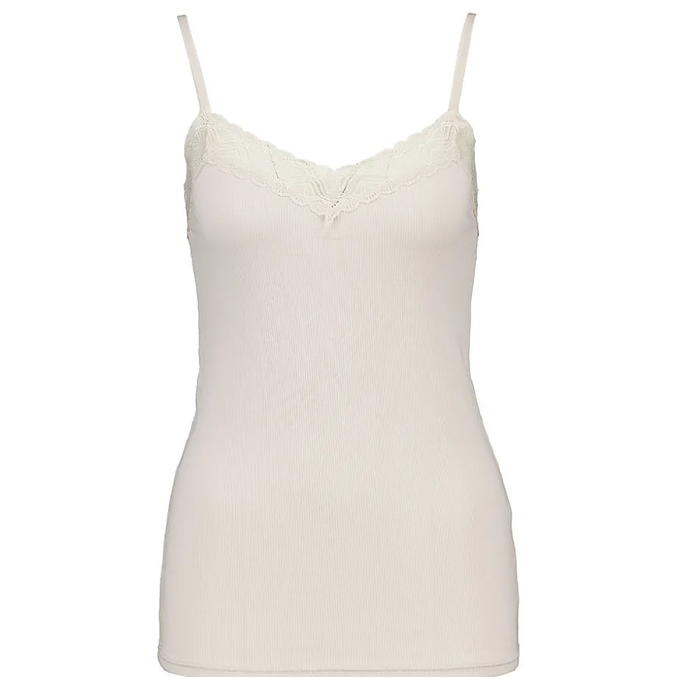Ce débardeur beige pour femme a de fines bretelles et un col en V avec une bordure en dentelle le long du décolleté. Le tissu doux, avec du coton et un peu d’élasthanne, est agréable à porter. Il s’étire légèrement et offre un bon confort. Son design uni permet de le porter facilement sous un chemisier ou un pull.