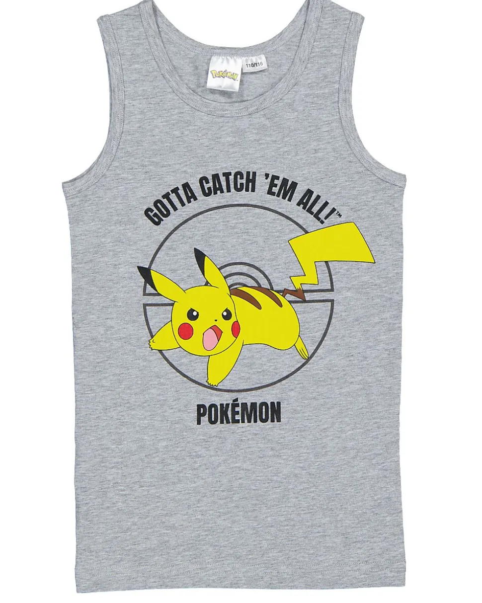 Ce débardeur gris pour garçons présente un motif chiné et une impression Pokémon. Il est fabriqué en coton avec une touche d’élasthanne, ce qui le rend agréable à porter et extensible. Ce débardeur est adapté aux journées plus chaudes et assure un confort optimal.