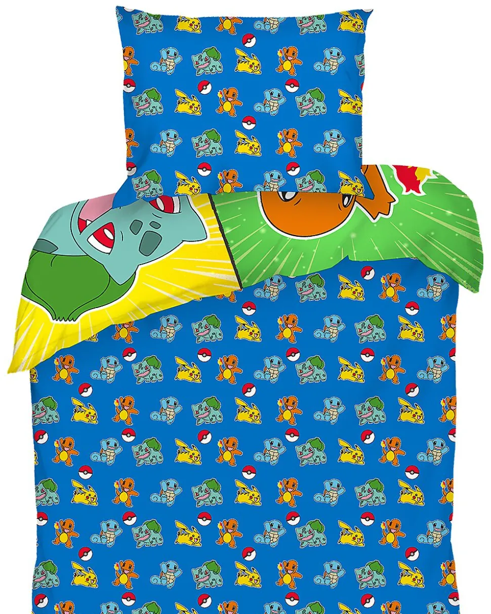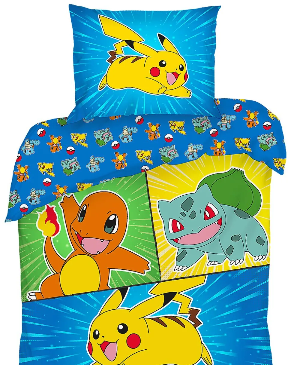 Cette parure de lit présente un magnifique imprimé illustrant des célèbres personnages Pokémon. Le tissu est composé à 52 % de coton et 48 % de polyester, ce qui le rend agréable au toucher et facile à entretenir. Les couleurs vives et les illustrations apportent à chaque chambre un aspect fun, qui invite votre enfant à se glisser avec plaisir sous la couette.