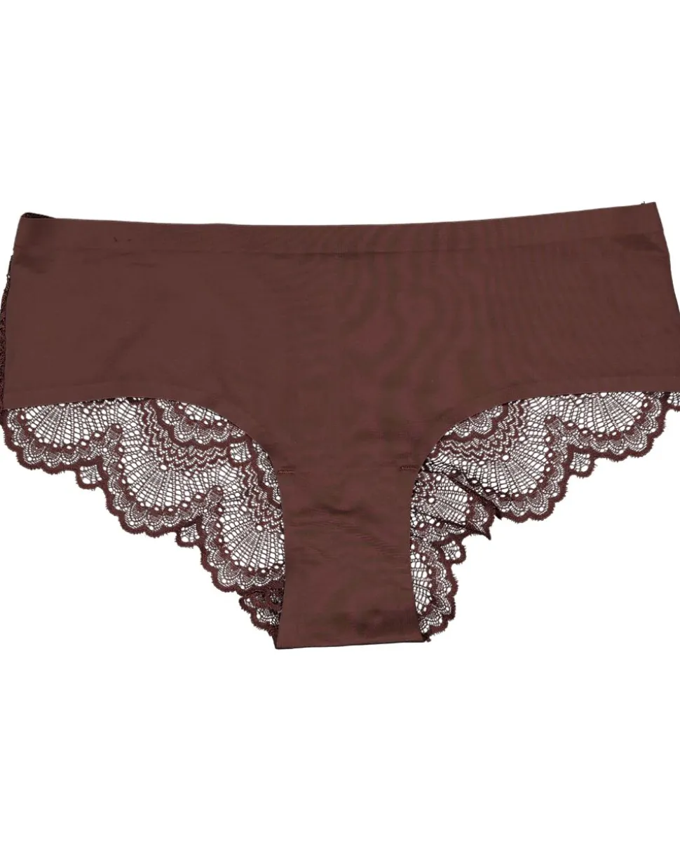 Ce lot comprend deux shortys Isabel marron foncé pour femme. Grâce à leur coupe sans coutures, ils sont invisibles sous vos vêtements et offrent un confort optimal. Le tissu lisse caresse la peau et les bords ainsi que le dos sont ornés de dentelle, pour un effet élégant. Parfaits sous des vêtements près du corps.