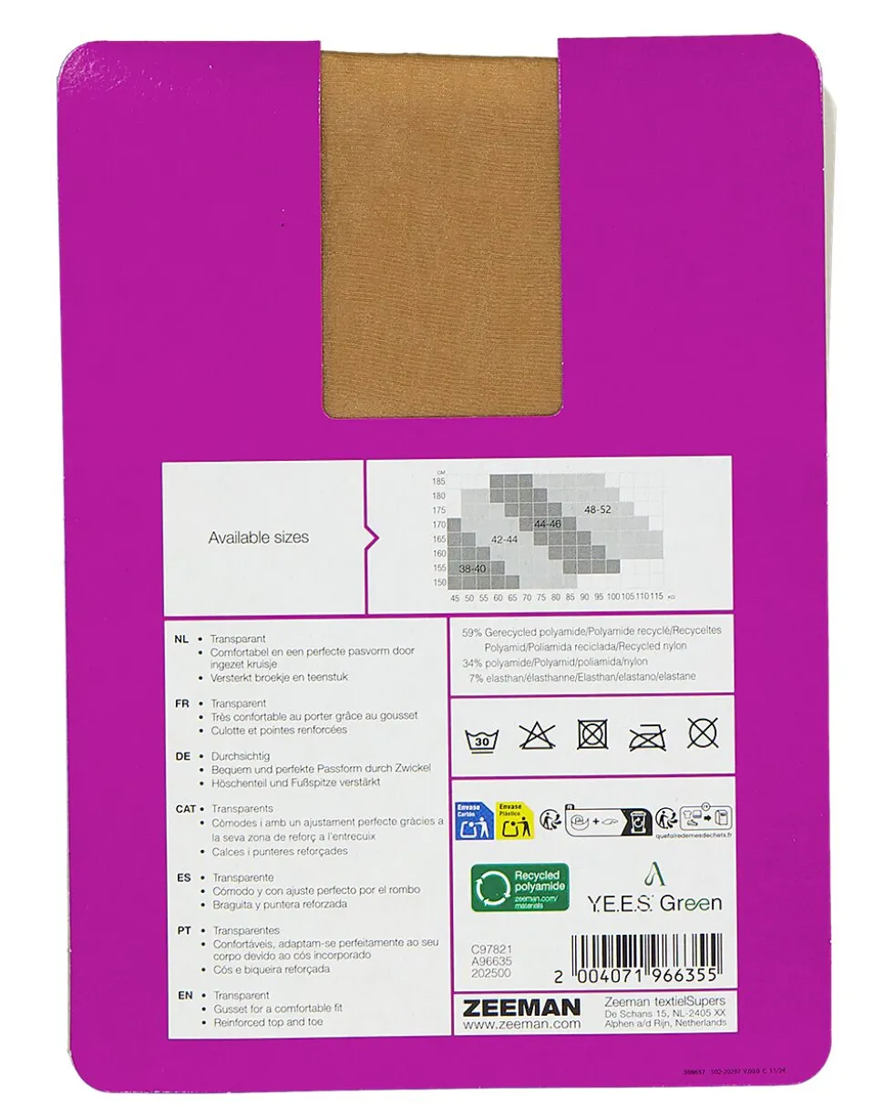 Ce collant beige pour femme est fabriqué dans un tissu lisse qui épouse parfaitement vos jambes. Grâce à sa matière extensible, il reste bien en place et suit parfaitement vos mouvements. La finition sans coutures apparentes au niveau des orteils garantit plus de confort dans les chaussures. La large taille maintient le collant parfaitement en place, sans serrer. Idéal à porter sous des robes, des jupes ou d’autres vêtements.