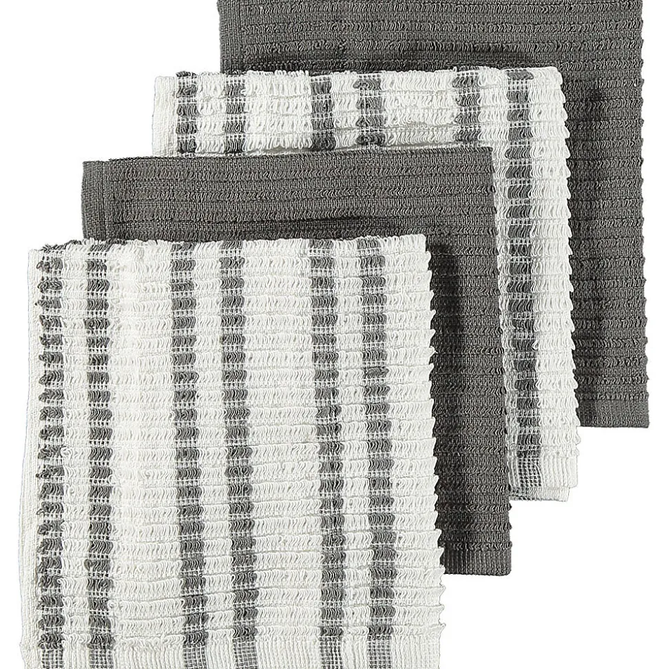 Ce lot contient quatre torchons gris en coton. Chaque torchon mesure 35 cm sur 35 cm. Deux sont à rayures, deux sont unis. Le coton est doux et bien absorbant, et les coutures ont une finition résistante pour que les torchons conservent leur belle forme après le lavage. Leur format les rend pratiques à utiliser en cuisine. Ils permettent d’essuyer votre plan de travail, de nettoyer la cuisinière ou d’éponger l’eau renversée. Avec ce lot de quatre pratique, vous en avez toujours un propre sous la main.