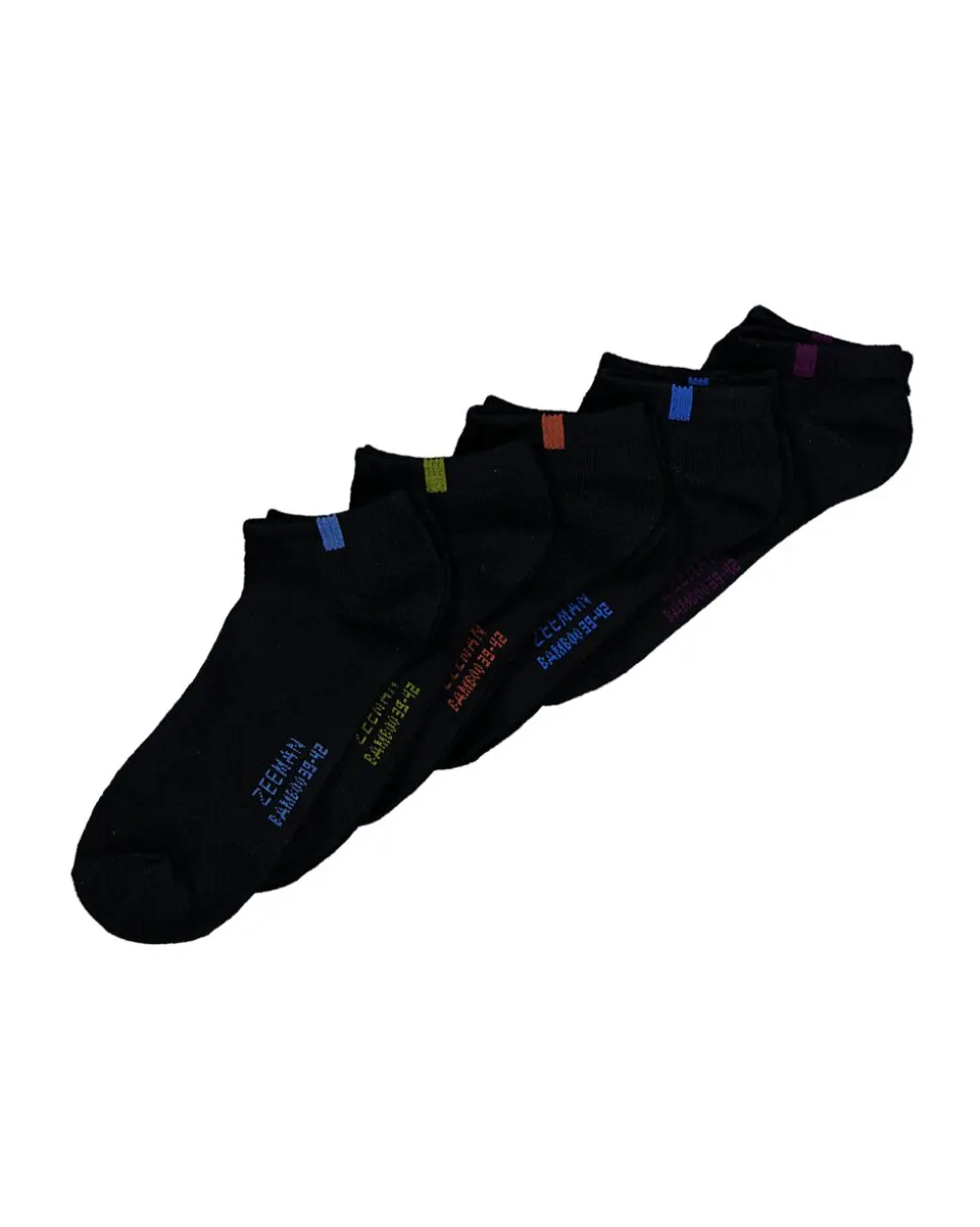 Ces socquettes noires sont vendues par cinq et ont de petites touches de couleur sur le bord supérieur, ce qui permet de les distinguer facilement. Le mélange de viscose de bambou, de polyester et d’élasthanne est doux et extensible, pour des chaussettes qui tiennent bien au pied. Leur coupe basse reste discrète dans des chaussures basses, ce qui les rend faciles à porter au quotidien.