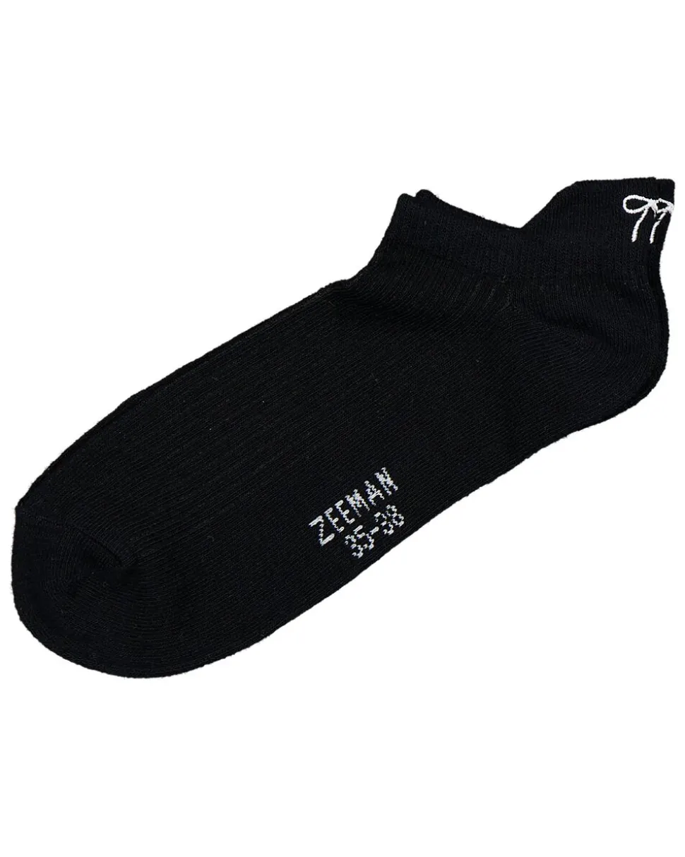 Ces chaussettes basses noires sont vendues par cinq. Leur coupe basse tombe autour du pied, ce qui les rend discrètes dans vos chaussures. Le bord doux tient bien en place, pour que les chaussettes restent fixées quand vous marchez. Leur couleur unie est pratique pour un usage quotidien et se combine facilement avec vos chaussures.