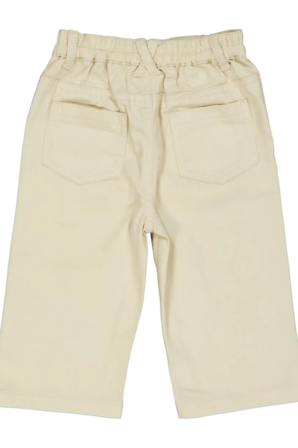Ce pantalon pour bébé beige est en coton 100 %, ce qui rend le tissu doux et respirant. Il a une coupe droite avec une fermeture à bouton en bois et des passants solides à la taille, pour qu’il reste bien en place. Le tissu souple permet à votre bébé de bouger facilement. Sa couleur neutre se combine facilement avec d’autres vêtements.