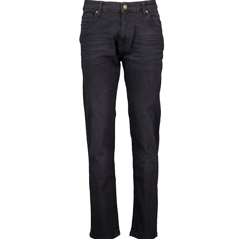 Ce pantalon noir pour homme est fabriqué en denim composé principalement de coton avec un peu d’élasthanne, pour un tissu résistant et légèrement extensible. De style classique à cinq poches, il est doté d’une fermeture boutonnée et zippée permettant de l’enfiler facilement. La coupe droite retombe souplement sur les jambes et est confortable à porter au quotidien, tout au long de la journée.