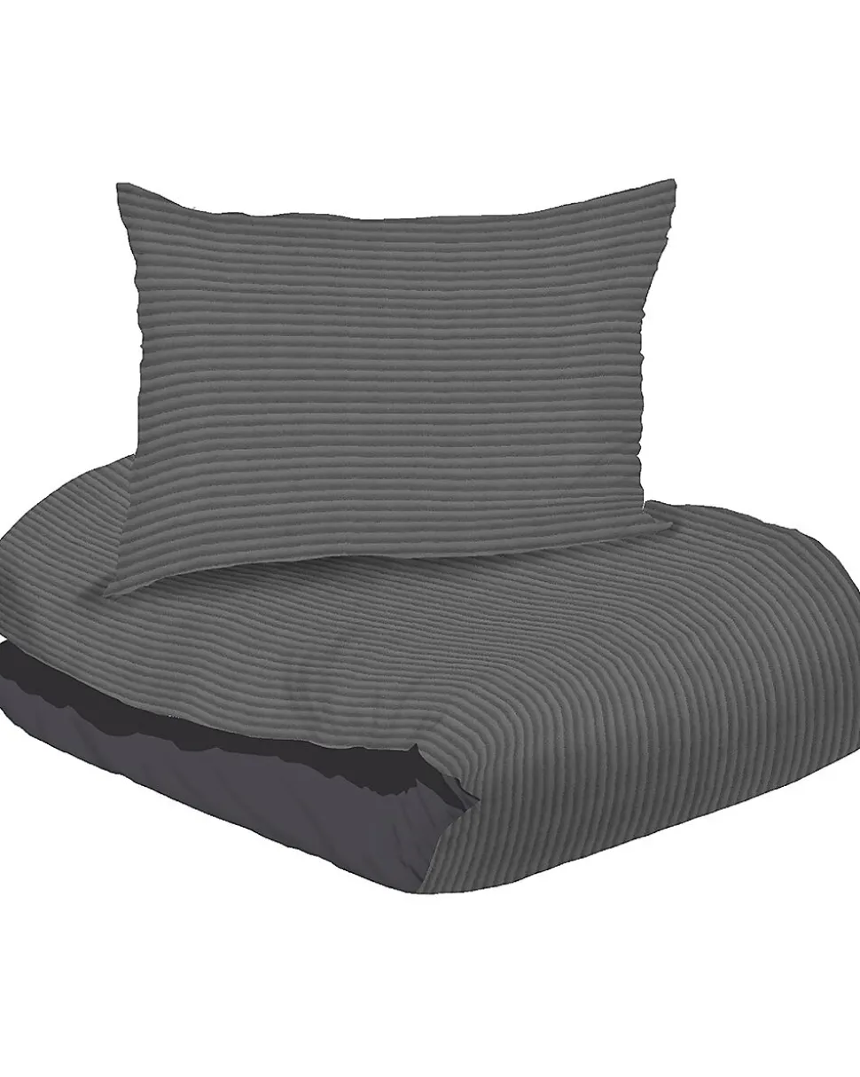 Cette parure de lit est fabriquée en velours doux et présente un motif rayé sobre dans des tons foncés. Elle comprend une housse de couette et deux taies d’oreiller. Convient pour un lit deux personnes de 200 sur 200 centimètres. Le tissu est agréable au toucher et apporte à votre chambre une ambiance chaleureuse.