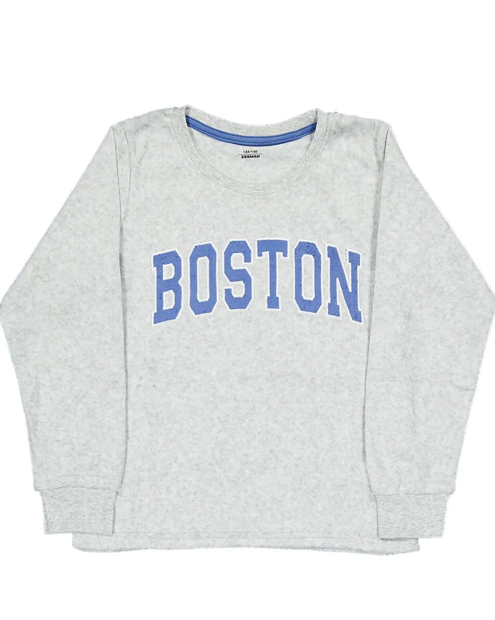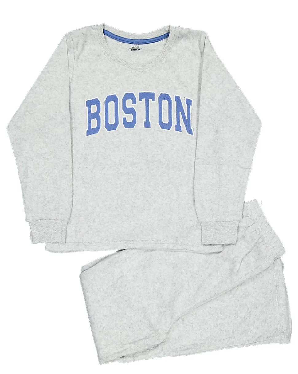 Ce pyjama gris pour filles se compose d’un haut à manches longues et d’un pantalon. Le devant est décoré de lettres bleues et le tissu velours doux est agréable sur la peau. Grâce aux manches longues et au pantalon, vous restez bien au chaud pendant les nuits plus fraîches. Idéal pour se détendre ou dormir confortablement.
