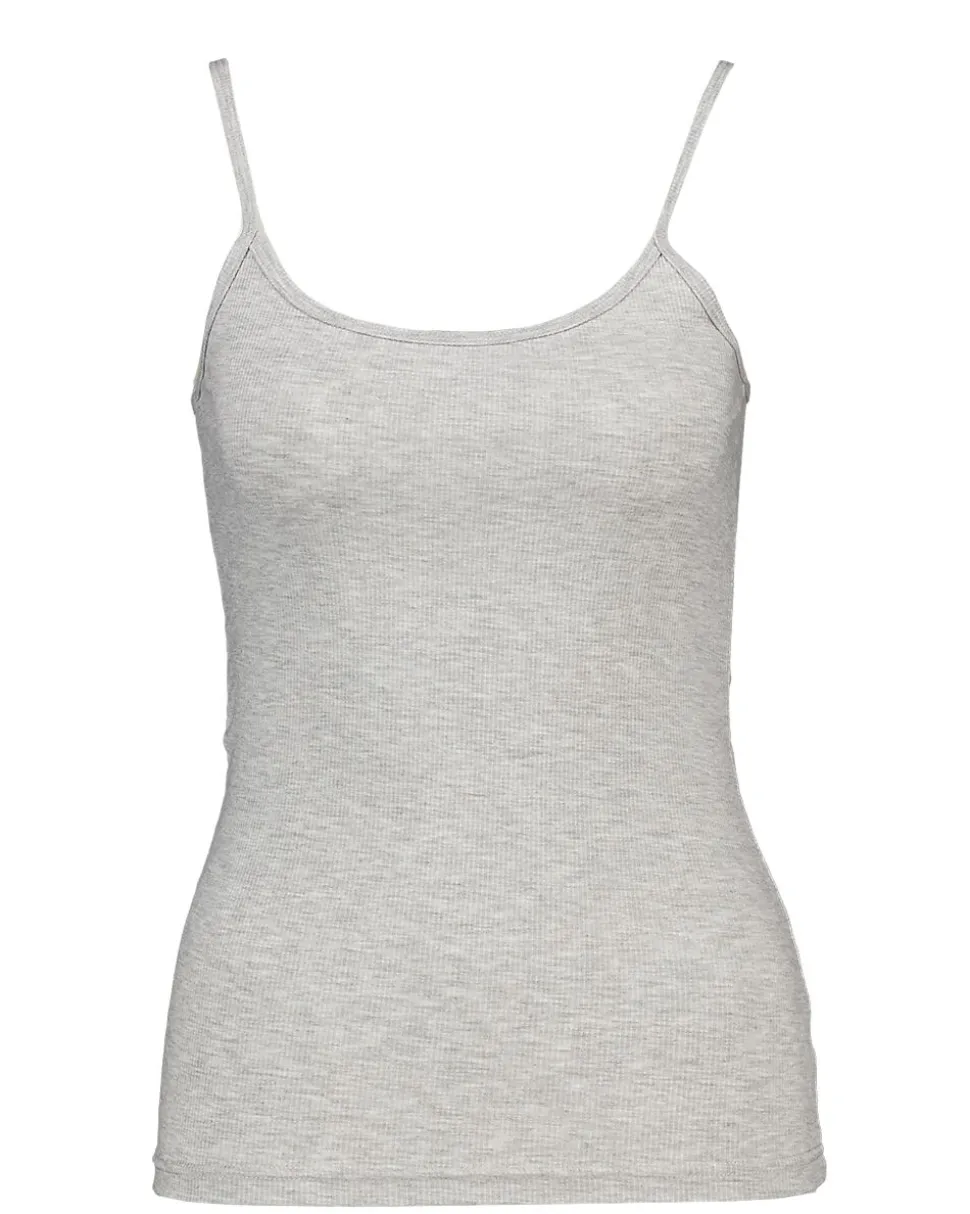 Ce débardeur gris pour femme, modèle Romy, a de fines bretelles et est confectionné dans une maille côtelée douce et extensible. Le mélange de viscose et d’élasthanne rend le haut souple et agréable à porter, il suit bien les mouvements et reste confortable. Grâce à sa couleur unie, ce débardeur est facile à assortir et se porte bien sous un gilet ou une chemise.