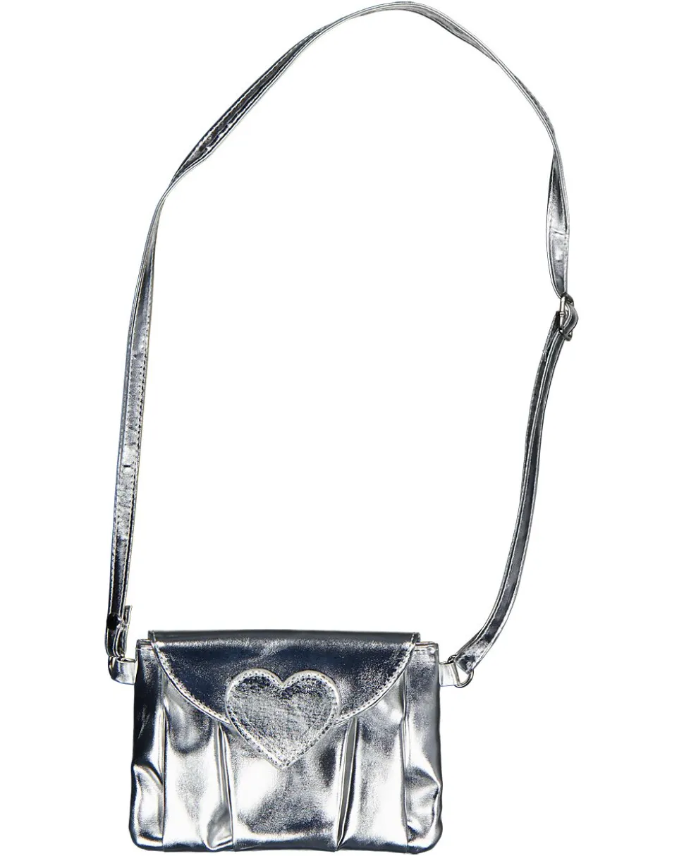 Ce sac est de couleur argentée et possède une bandoulière réglable. Il y a un détail en forme de cœur bien visible sur le devant. Le sac est fabriqué en polyuréthane, polyester et fer. Grâce à son format compact et à son aspect neutre, ce sac convient aux garçons et aux filles. Pratique pour emporter de petits objets lors d’une sortie ou d’une journée dehors.
