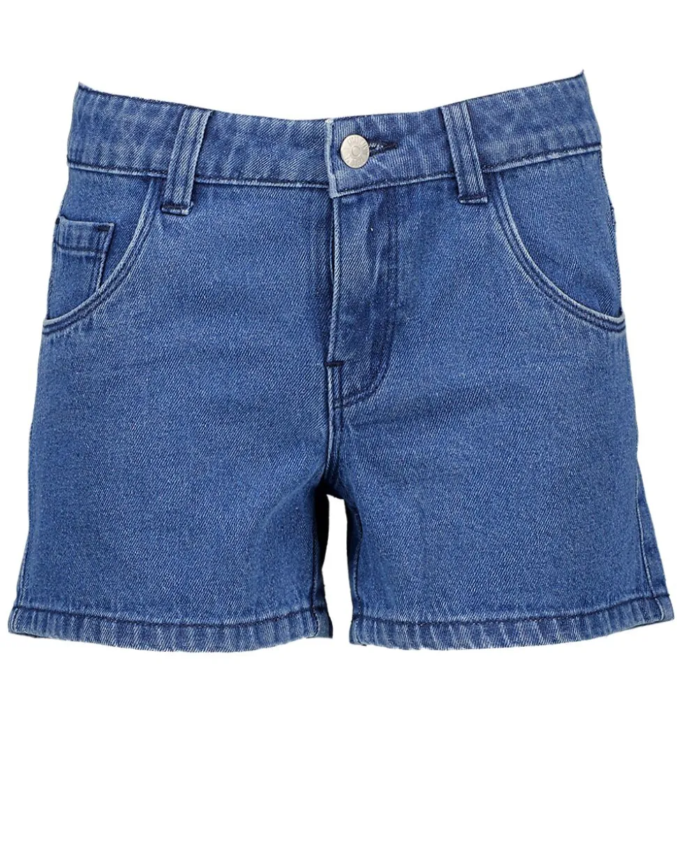 Ce short bleu présente une coupe simple et se ferme par un bouton et une fermeture éclair. Le short possède des passants de ceinture et des poches latérales pour un usage pratique. Portez ce short bleu lors des journées chaudes pour une tenue confortable et légère.